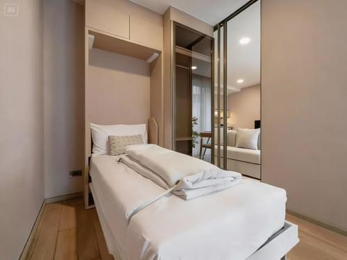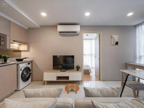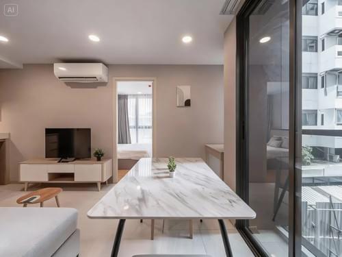 Set within one of Watthana’s most stylish low-rise developments, this elegant 2-bedroom, 2-bathroom residence at Walden Asoke offers refined city living in a compact, beautifully designed format. Located on the 4th floor, the unit spans 48.6 sqm of fully furnished space, intelligently planned to maximise light, flow, and functionality.
