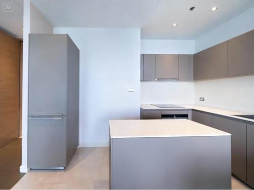 Fully furnished with modern, high-end finishes, the interior is enhanced by high ceilings that create an open, airy feel. Stainless steel appliances, an oven, and a washer are seamlessly integrated into the space, making the home immediately ready for occupation or investment. From its elevated position, the unit enjoys sweeping city views, reinforcing its sense of calm above the energy of downtown Bangkok.