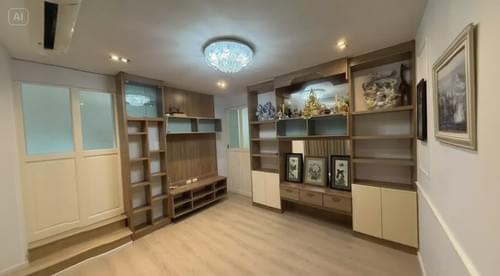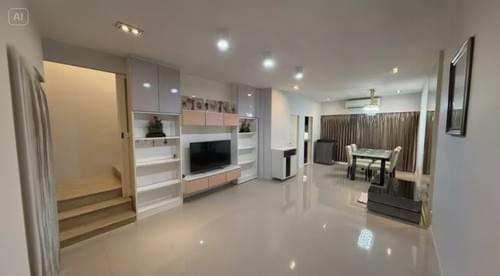 This 178 sqm, fully furnished 3-bedroom, 3-bathroom townhouse spans three floors and offers a perfect blend of style, functionality, and comfort. The open-plan living and dining area features glossy tile flooring, modern lighting, and large curtains, creating a bright and sophisticated atmosphere. Built-in shelving, a TV unit, and a dining table complete the space, making it ideal for both family living and entertaining.